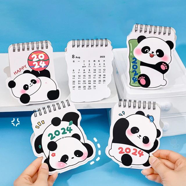 2024 Calendar Kawaii Panda Coil Desk Calendar Dual Daily Weekly