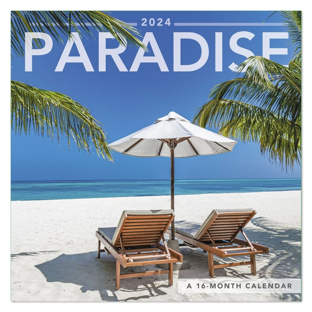Paradise 2024 Mini Monthly Wall Calendar 7″ X 14″ open 16 months